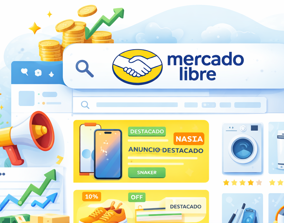 Posicionamiento pago de tus productos en búsquedas y categorías. Segmentación por intención de compra real (no solo interés). Optimización de campañas según ventas, ROAS y rentabilidad.